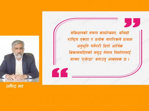 धर्मेन्द्र झा संविधान जारी भएको दसौँ वर्ष । अघिपछिको भन्दा यस पटकको यो दिवस दुई कारणले महत्वपूर्ण छ । पहिलो, नेपालको संविधान २०७२ जारी भएको दसौँ वार्ष ...
