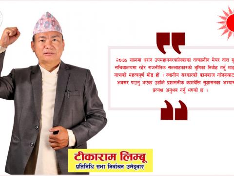 इमान, अध्ययन र युवाशक्तिको संयोजनधरान । सुनसरी क्षेत्र नं. १ बाट प्रतिनिधि सभा सदस्यका लागि नेकपा एमालेको उम्मेदवार बन्नु भएका टिकाराम लिम्बू (माङ्ले ...