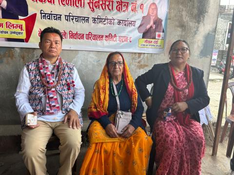 धरान । ९८ वर्षिया तुलसादेवी सापकोटाबाट एमाले उम्मेदवार टीकाराम लिम्बू र समानुपातिक उमेदवार मौसम राईलाई टीका खदा र आशिष् ग्रहण गर्दै नेकपा (एमाले) ले ध ...